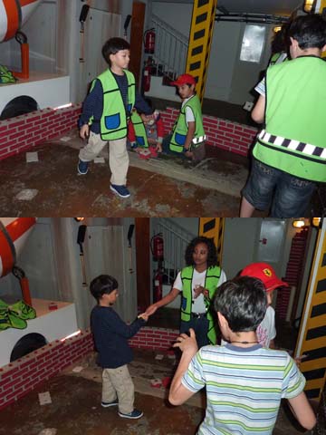 For some of the kids at certain timings, they get to do fire fighting and hose down some sort of fire...
