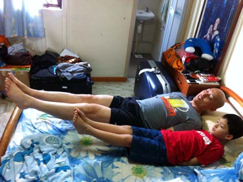 But before go eat must exercise lah.. Father and son working their abs and perhaps burning some energy so tat they can make some space in tummy to eat more:) wahahahaha