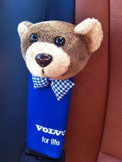 Am rather impressed with the Volvo salesgirl.. the last time we went, she told Ace that she is going to try to get him a present.. I have clean forgotten about it but she hasn't! When Max went down to settle some paperwork, she actually passed Max these seatbelt thingys with a little bear and said they are for Ace.
