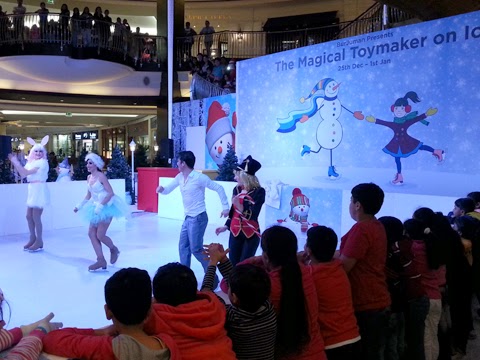 This year, we found out that the mall near home had a free Ice Skating lesson on top of their usual performance.. hoh say liao:)
