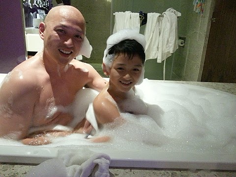 Ace says want to do bath.. and after the water bath is set up in our room.. even though Max already in the tub, Ace still sitting outside cos his feels the water is too hot...